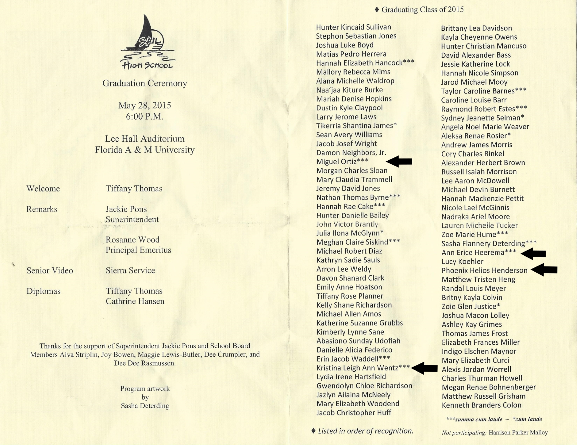 Four former Grassroots Free School students are graduating from SAIL High School this Spring. Three of them–Miguel Ortiz, Kristina Leigh Ann Wentz, and Ann Erice Heerema–graduated with honors. The fourth, Phoenix Helios Henderson, drew the cover for the school’s yearbook. Congratulations!
